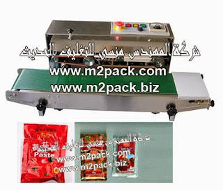 ماكينة اللحام الآتوماتيكية المستمرة التي تقوم بلحام وتقفيل وغلق أكياس الكاتشاب موديل 301 ام تو باك التى نقدمها نحن شركة المهندس المنسي للتغليف الحديث و الصناعات الهندسيه ام تو باك :